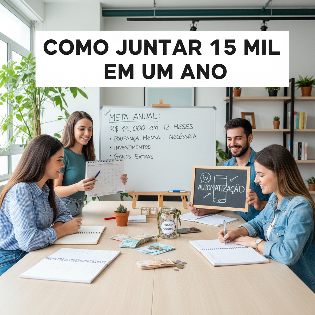 A melhor estratégia para como juntar 15 mil em um ano combina três pilares: (1) Automatizar a poupança, transferir R$ 1.250 para uma conta separada no dia do pagamento; (2) Controlar gastos em tempo real com um aplicativo como o ZapGastos; e (3) Investir o valor acumulado em um CDB de liquidez diária ou Tesouro Selic para que os juros trabalhem a seu favor.